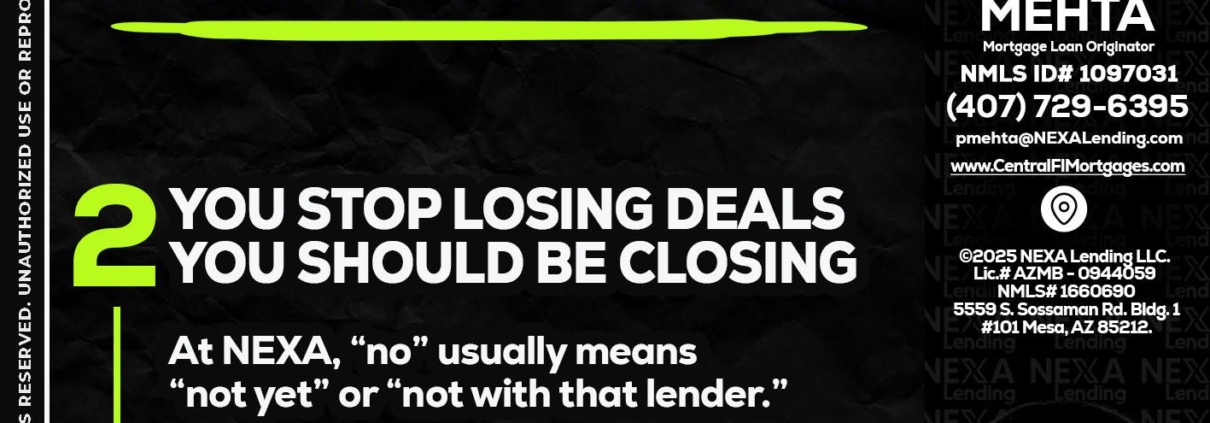 7 THINGS (2) - Romi Mehta -Mortgage Loan OriginatorHi, my name is Romi Mehta. I’m a Loan Officer with NEXA Lending LLC., offering personalized mortgage solutions, fast customized quotes, great rates and service with integrity.