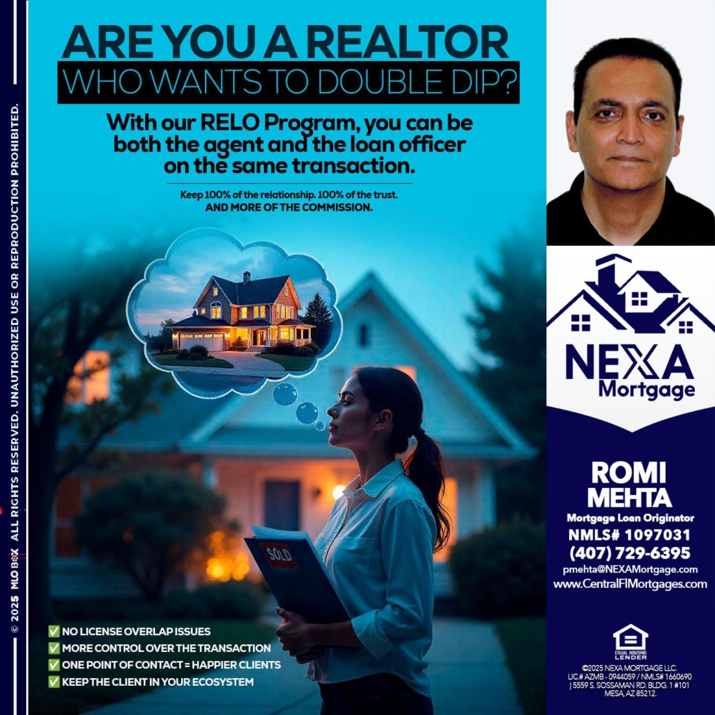 Are you a Realtor? - Romi Mehta -Mortgage Loan OriginatorHi, my name is Romi Mehta. I’m a Loan Officer with NEXA Mortgage LLC., offering personalized mortgage solutions, fast customized quotes, great rates and service with integrity.
