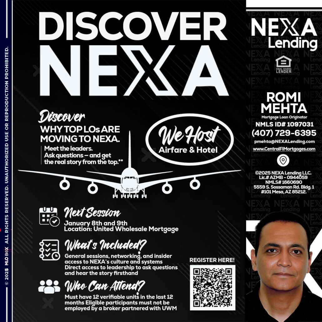 Hi, my name is Romi Mehta. I’m a Loan Officer with NEXA Mortgage LLC., offering personalized mortgage solutions, fast customized quotes, great rates and service with integrity.