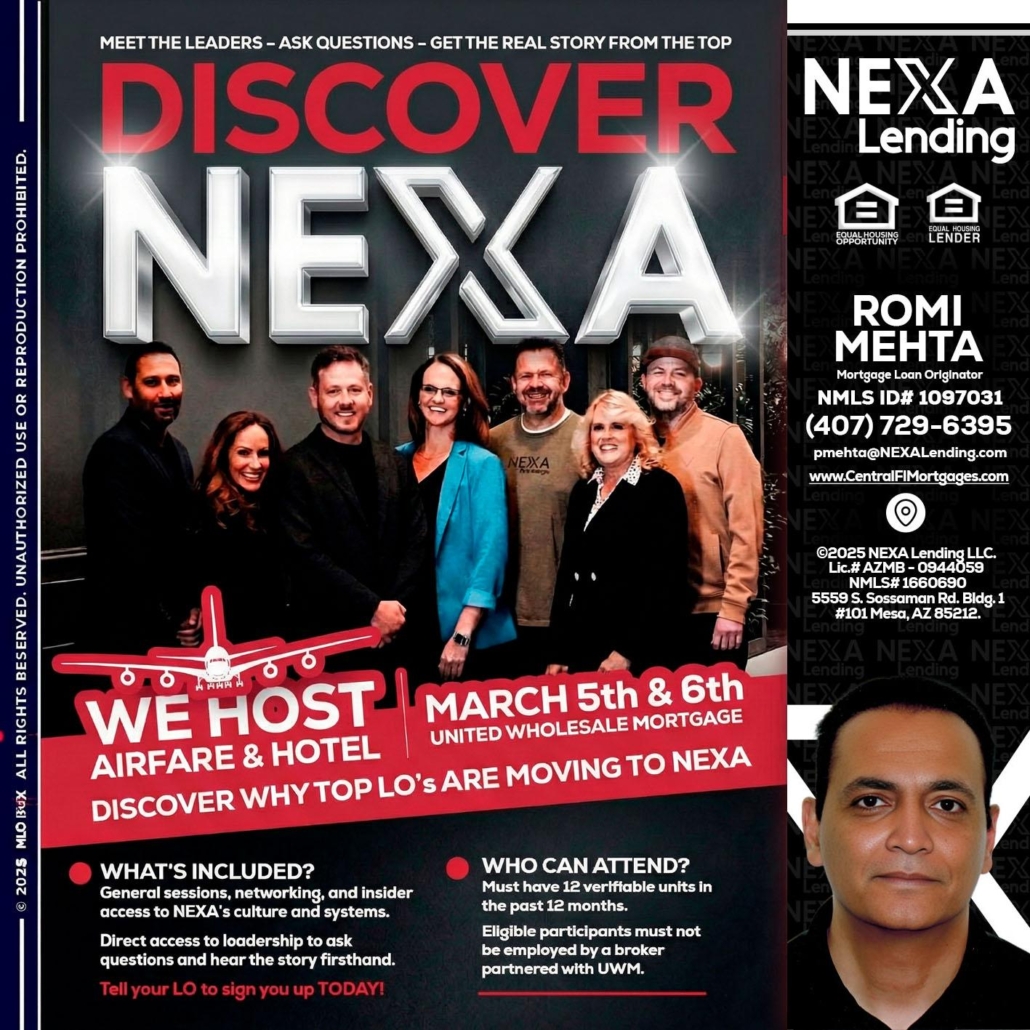 Hi, my name is Romi Mehta. I’m a Loan Officer with NEXA Lending LLC., offering personalized mortgage solutions, fast customized quotes, great rates and service with integrity.