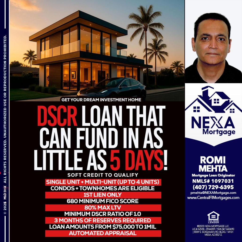 Hi, my name is Romi Mehta. I’m a Loan Officer with NEXA Mortgage LLC., offering personalized mortgage solutions, fast customized quotes, great rates and service with integrity.