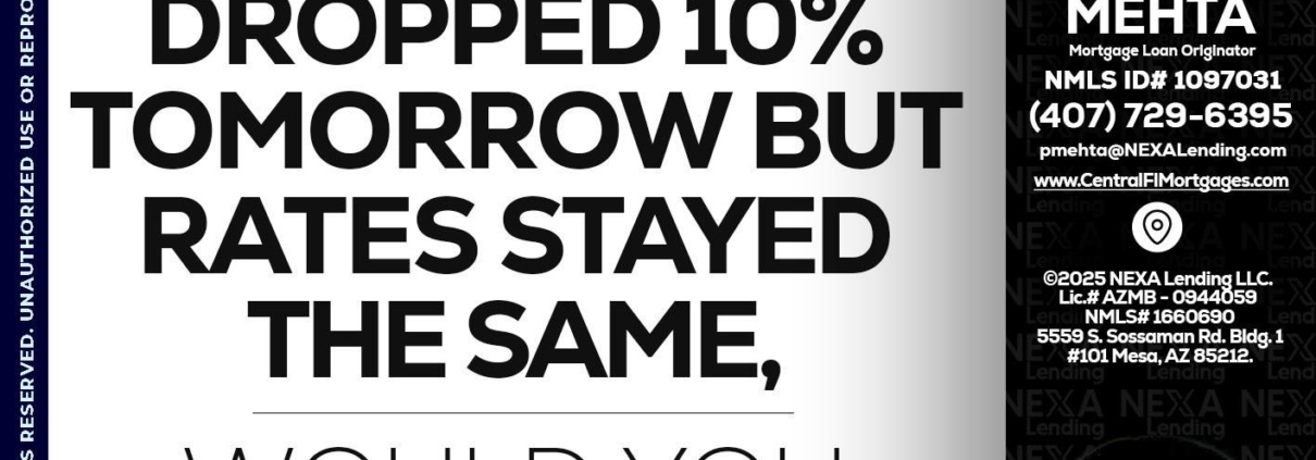 Hi, my name is Romi Mehta. I’m a Loan Officer with NEXA Mortgage LLC., offering personalized mortgage solutions, fast customized quotes, great rates and service with integrity.