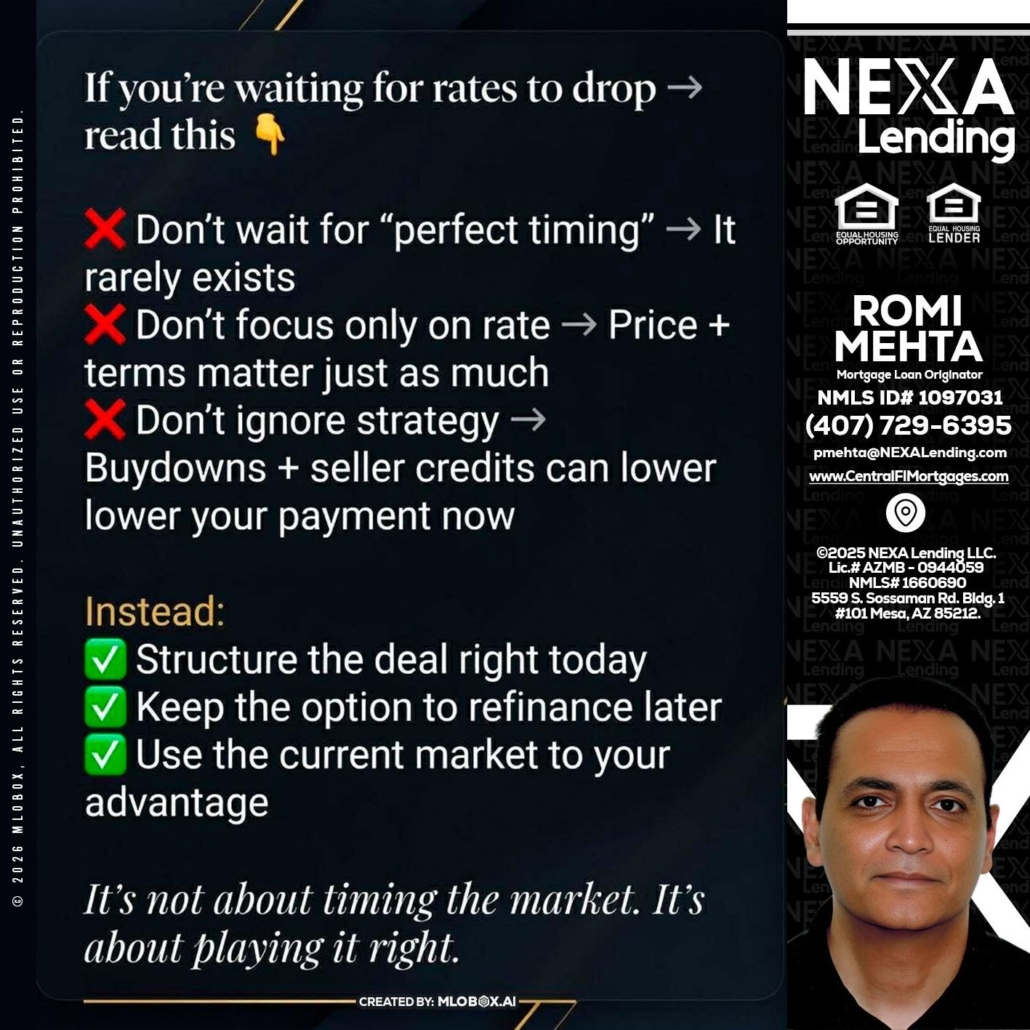 Hi, my name is Romi Mehta. I’m a Loan Officer with NEXA Lending LLC., offering personalized mortgage solutions, fast customized quotes, great rates and service with integrity.