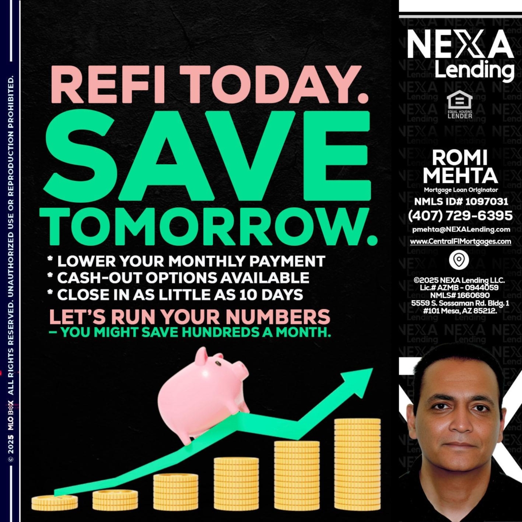 Hi, my name is Romi Mehta. I’m a Loan Officer with NEXA Mortgage LLC., offering personalized mortgage solutions, fast customized quotes, great rates and service with integrity.
