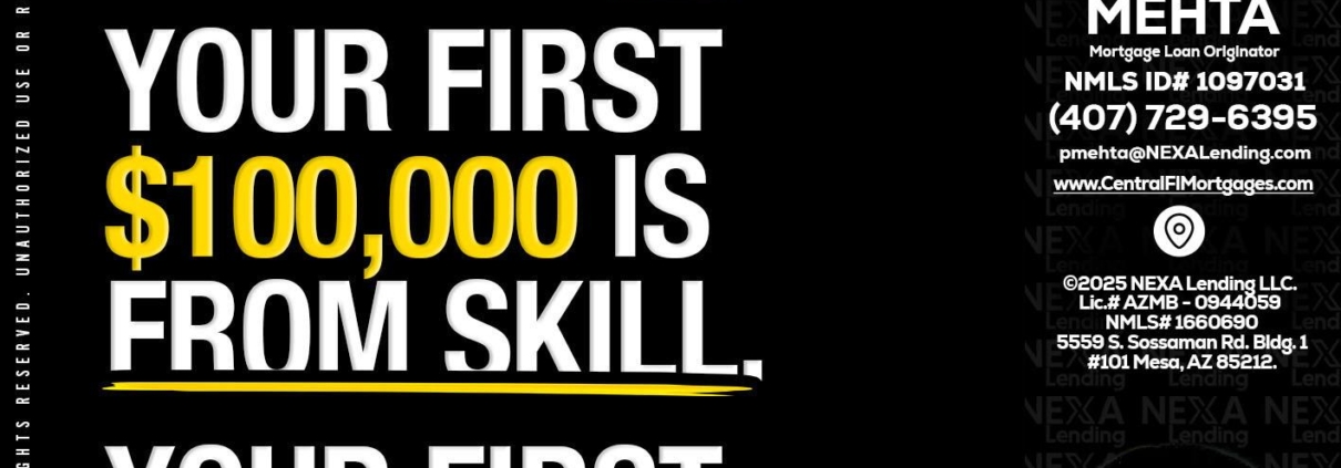 YOUR FIRST $1000 - Romi Mehta -Mortgage Loan OriginatorHi, my name is Romi Mehta. I’m a Loan Officer with NEXA Lending LLC., offering personalized mortgage solutions, fast customized quotes, great rates and service with integrity.